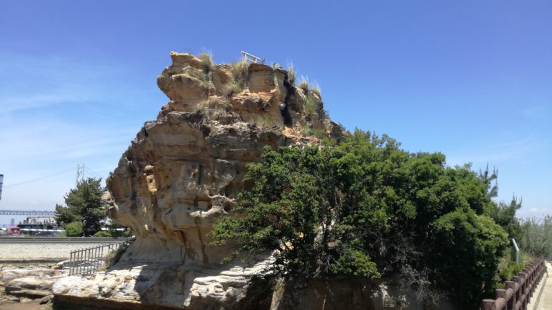 この石は地質学的に珍しい褐鉄鉱沈殿砂岩層(約二千万年前の砂岩層)といい、