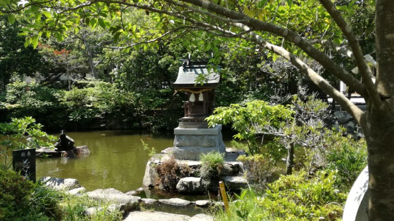 放生の池とも呼ばれ、生命を司る神に鯉と亀を放つ習慣がある。池端に参拝者の憩う放生庵が平成22年春に完成した。