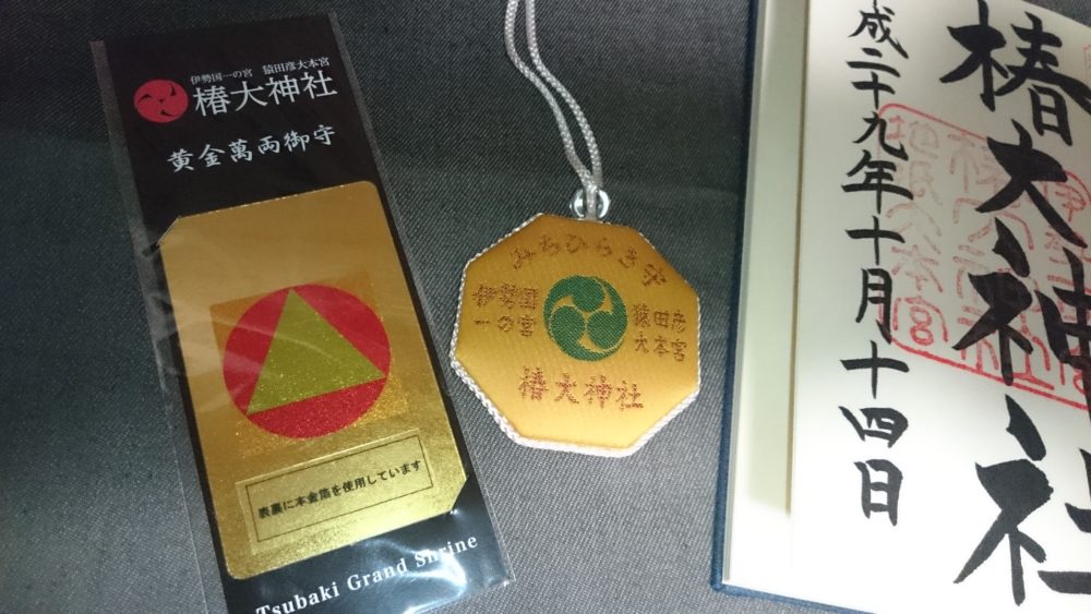 写真の金色の御守りは、「財運UP」に効果があるということです。